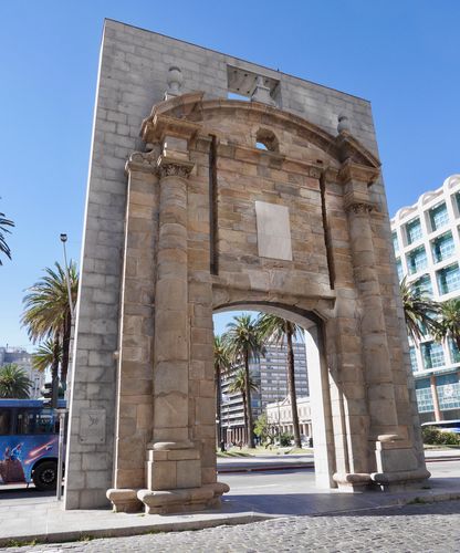 Mon périple m'offrira d'admirer la porte de la Citadelle (ci-dessous), un des seuls vestiges encore debout de cette muraille qui entourait autrefois la vieille cité. Cette porte donne à la fois dans l'axe conduisant à la place de l'Indépendance et sur le boulevard Sarandi. C'est en 1829 que sera détruite la plus grande partie historique de Montevideo, mais il reste encore de nos jours, bien de de jolies choses à découvrir sur place, heureusement pour nous. Le plan fourni par l'office de tourisme m'offre une listes des endroits remarquables, numérotés de 1 à ...64. Je commence donc ma promenade depuis le musée du Carnaval (deuxième photo), haut lieu de la culture carnavalesque qui est apparue ici depuis l'époque des Colons. Les conquistadores apportèrent en effet avec eux traditions et fêtes en tous genres. Et le carnaval en fait partie, qui donne lieu chaque année à un défilé partant de l'Avenue du 18 Juillet et dans lequel sont représentés divers groupes dont des écoles de samba, les reines du carnaval et des chars allégoriques.