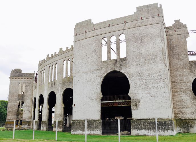 La pluie menace mais épargne pour l'instant la région. Je saute dans ma voiture et prends la direction de Real de San Carlos, à seulement quelques kilomètres de là, afin d'y admirer sa Plaza de Toros (ci-dessous). Le roi en question est Carlos III d'Espagne, puisque les Espagnols occuperont cette zone avant d'assiéger en 1761 la ville de Colonia del Sacramento, alors sous domination portugaise. La Plaza de Toros, elle, est unique en son genre dans ce pays et fut construite en 1910 dans le style mudéjar, offrant une grande ressemblance avec les places similaires que l'on peut rencontrer en Espagne. On doit sa construction à l'architecte argentin José Marcovich et à l'ingénieur Dupuy. L'endroit abritera plus de 80 corridas (dont huit grandes corridas officielles) et bien d'autres spectacles. A l'époque, on faisait venir les taureaux d'Espagne, bien que d'autres taureaux de races sud-américaines aient été parfois utilisés. Il ne faudra que huit mois pour bâtir cette gigantesque place. La structure métallique, qui fut apportée de Grande-Bretagne, reste aujourd'hui visible, alors que l'ensemble, actuellement en cours de restauration, reste interdit au public. Cette construction, désormais classée comme monument historique national, fut dévastée lors de forts vents en 2012.