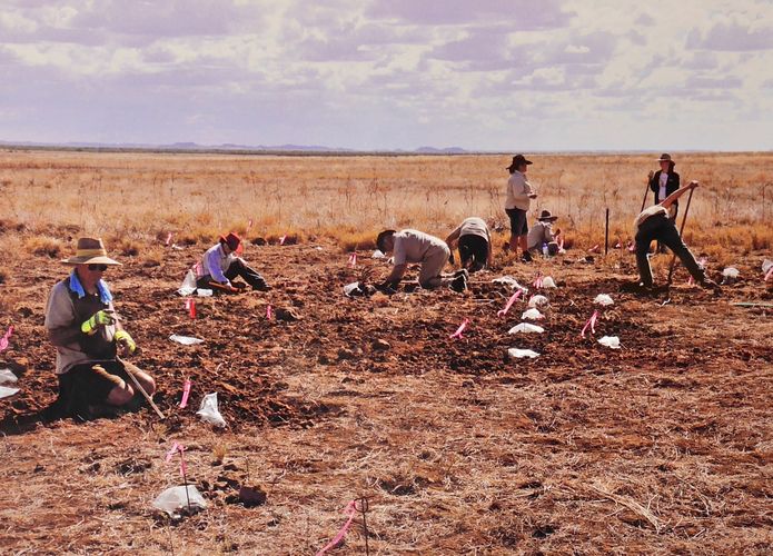 Je vous ai parlé plus haut du Crétacé, qui correspond à une période géologique s'étant étendue entre il y a 145 à 66 millions d'années. Cette période se terminera d'ailleurs avec la disparition des dinosaures non aviens, suite à un probable impact d'une météorite tombée dans le Yucatan. Pourquoi Crétacé ? Le terme provient du latin creta (craie) qui se réfère aux vastes dépôts crayeux marins datant de cette époque et retrouvés dans la région. Il y a 600 millions d'années, le Gondwana formait un supercontinent rassemblant l'Amérique du Sud, l'Afrique, l'Inde, l’Antarctique et l'Australie. Celui-ci se morcellera il y a 160 millions d'années expliquant qu'on ait pu retrouver des traces de dinosaures sud-américains dans l'Etat du Queensland. Là où je me trouve aujourd'hui se trouvait jadis la Mer Eromanga, ce qui explique que les recherches géologiques actuellement effectuées aient permis de retrouver différents fossiles marins et des coquillages comme par exemple des moules géantes (d'environ 40 cm de long).