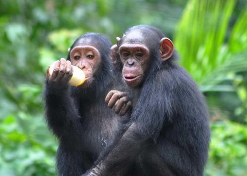 Les chimpanzés ne sont pas en voie d'extinction comme les gorilles. Ils se nourrissent par exemple de bananes mûres et menacent donc moins facilement les bananeraies , contrairement aux gorilles qui , eux, mangent les cœurs des bananiers et sont donc plus directement pourchassés par les agriculteurs.