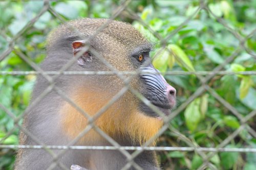 Les mandrills sont derrière un enclos entouré d'un double grillage , ce qui ne facilite pas la prise de photographies.