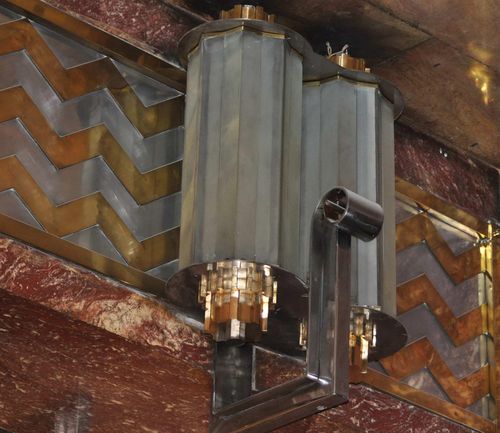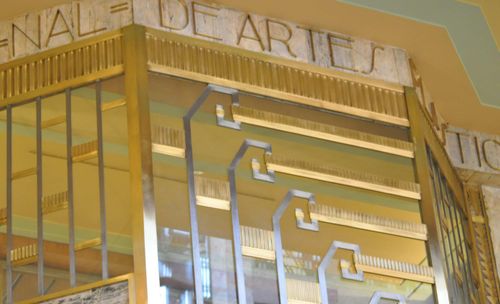 L'intérieur du Palais est revêtu de divers marbres du Mexique et de l'étranger: du blanc de Carrare, du noir de Monterrey, du rouge de Torreon et du rose de Querétaro ( voir ci-dessus). Une spectaculaire ornementation art déco réalisée à Paris par la Maison Edgar Brandt comporte des motifs mexicains comme ces macarons mayas en acier et des cactus en bronze, entre autres éléments artistiques de fer forgé, balcons et autres lustres.