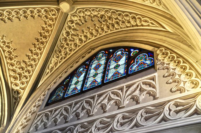 La Sainte-Chapelle, elle, sera édifiée entre 1408 et 1430 par les maitres Claus de Werve, Jacques Magnin et Nicolet Robert. Le comte Amédée VIII et son épouse feront appel à des imagiers des cours bourguignonne et flamande pour orner l'ensemble, et des verrières (ci-dessous en photo) seront réalisées en 1413 par le peintre Jehan Coeden, bourgeois de Chambéry. C'est vers 1453-55 que le duc Louis obtiendra de Marguerite de Charny la relique du Saint-Suaire, avant que ne soit instauré un culte public du Saint-Suaire, par bulle pontificale du 26 avril 1506. Et des processions de se dérouler le Vendredi Saint ainsi que le 4 mai de chaque année pour marquer cet évènement. La renommée de la précieuse relique sera aussi entretenue par le pèlerinage auquel participeront de grands personnages comme François 1er, Claude de France, Anne de Bretagne ou le cardinal d'Aragon... Le célèbre Saint-Suaire échappera de justesse à un incendie en 1532 qui laissera toutefois des traces réparées par les clarisses de Chambéry. En 1563, la Cour installera son gouvernement et ses affaires à Turin et le Saint-Suaire sera emprunté par l'archevêque de Milan quinze ans plus tard, contre la volonté des Chambériens. Et le dernier roi d'Italie, Umberto II, alors sur son lit de mort en 1983, de faire don du Saint-Suaire appartenant à la maison de Savoie à l'Eglise. Quant à la Sainte-Chapelle, dédiée à Saint Etienne, elle accueillera mariages princiers et royaux, dont celui de Louis XI.
