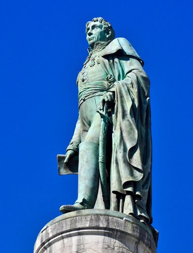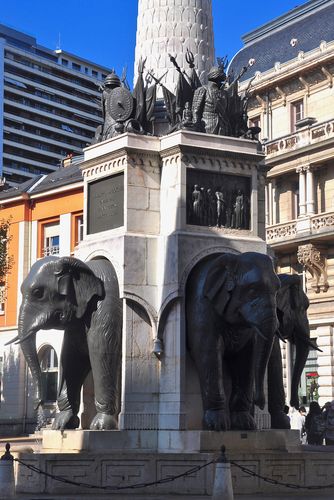 Mon périple journalier s'arrête enfin à la fontaine des Eléphants. Monument emblématique de Chambéry, cette fontaine fut érigée en 1838 afin de rendre hommage au Général de Boigne (dont la statue figure ci-dessous), grand bienfaiteur envers sa ville natale. Mais pourquoi donc des éléphants ? Enfant du pays, celui qu'on appelait Général comte de Boigne fut un aventurier savoyard qui fit fortune aux Indes. Fils de commerçants bien établis, il entamera tôt une carrière militaire, après avoir suivi une formation au sein de régimes européens puis se mettra au service du Mahadajî Sindhia qui régnait alors sur l'empire marathe (Inde). Et Sindhia de confier au Général de Boigne la création et l'organisation d'une armée de 100 000 hommes d'après le modèle européen. Cette même armée permettra à la Confédération marathe de dominer l'Inde du nord et de rester le dernier Etat autochtone de l'Hindoustan à résister aux Anglais. Homme avisé, Benoit de Boigne exercera également des activités commerciales et administratives, étant titulaire d'un jaghir (fief accordé par un rajah ou un dignitaire indien, à un grand officier ou à une personnalité importante). Notre homme reviendra bientôt en Europe, puis dans sa Savoie natale, cette fois en tant que notable, pour consacrer ses dernières années à des œuvres de bienfaisance au profit de sa bonne ville de Chambéry, jusqu'à son décès en 1830.