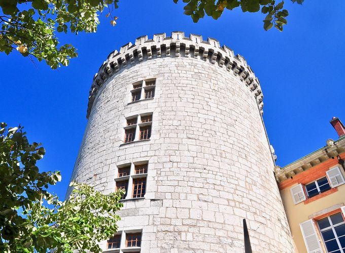 Autre tour, polygonale, mais la plus imposante du château, est celle de la Trésorerie, qui reste mal connue du grand public. Prenant appui sur le mur d'enceinte, elle possède des batteries basses et est liée à l'apparition de l'artillerie vers la fin du 14è siècle. On la surnommera Tour du Trésor car elle abritera chartes, terriers et registres avant d'être rattachée à la Chambre des comptes de Savoie. Son nom actuel date de l'installation en son sein des bureaux de la Trésorerie générale du département en 1726.