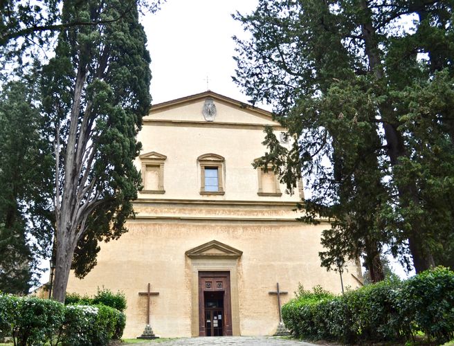 En partant de Ponte Vecchio, j'emprunte la Via de Guicciardini, puis tourne à gauche de l'église Santa Felicita, la pente raide appelée Costa di San Giorgio. L'église en question a tout de même dix-sept siècles d'histoire à son actif et des recherches ont confirmé l'existence d'une communauté chrétienne hors les murs de Florence dès l'an 405, le long de l'Arno et sur les flancs de San Miniato. La phase Renaissance de l'ensemble est marquée dès 1418 par l'intervention de Brunelleschi à l'intérieur de la chapelle Capponi, dont la superbe sacristie qui fut bâtie en 1473 d'après des dessins du célèbre architecte. Une chapelle qui profitera directement de la création du couloir de Vasari en 1565 pour renforcer ses liens avec la cour des Médicis puisque les souverains participeront en personne aux offices en 1589. Le 18è siècle sera quant à lui synonyme de bouleversements avec le remodelage architectural complet de l'édifice en faveur d'un style baroque classique, réminiscence de Brunelleschi.