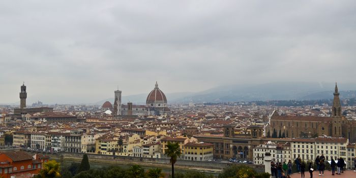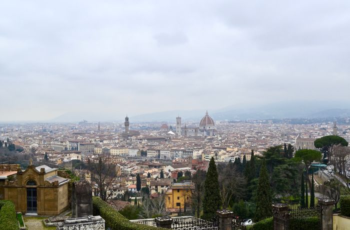 Quittons le centre de Florence pour nous rendre jusqu'à l'église San Miniato al Monte au sommet d'une colline située au sud de la cité. Cette promenade nous permettra de longer les murs de la ville, tout en traversant le piazzale (esplanade) Michelangelo, célèbre pour son panorama, avant de rebrousser chemin vers Ponte Vecchio.
