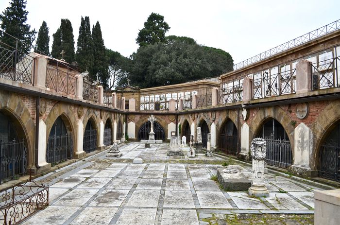 Bâtie, comme le veut la tradition, à l'emplacement de la tombe de Saint Minias, riche marchand arménien décapité au 3è siècle et premier martyr florentin, San Miniato al Monte (en photo ci-dessous) est une de ces églises romanes les mieux préservées de Toscane, avec sa façade décorée d'un parement de marbre blanc et de serpentine depuis le 12è siècle. Et de porter en son sommet la statue d'un aigle serrant un ballot de laine, emblème de la corporation des lainiers qui finança le sanctuaire à partir de 1288. On trouve aussi sur place un mosaïque bien restaurée remontant au 13è siècle et montrant le Christ entre la Vierge et Saint Minias. Le campanile fut quant à lui commencé par Baccio d'Agnolo en 1523 mais ne fut jamais terminé. Sa plate-forme servira malgré tout de pas de tir pour l'artillerie lors du siège de Florence. L'intérieur de l'édifice permet d'admirer un dallage orné de sept mosaïques de marbre, dont un panneau représentant les signes zodiacaux. On retrouve une mosaïque de marbre identique sur la balustrade et l'ambon du choeur surélevé, tandis qu'une autre mosaïque, de style byzantin celle-là, orne l'abside et représente encore une fois le Christ entre la Vierge et Saint Minias. D'ailleurs, les reliques du saint ont trouvé refuge dans la crypte située au fond de la nef et dont les colonnes proviennent de bâtiments antiques. Avant de repartir, je m'arrête à la chapelle du Cardinal pour admirer sa voûte ornée de médaillons conçus par Luca della Robbia. Un vaste cimetière, attaché à l'église, fut créé en 1854 et abrite de riches sépultures ressemblant pour certaines davantage à de petites maisons qu'à des tombes.