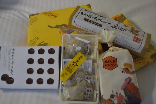 Kyushu souvenirs, au Yahoo Japan Dôme ( juste en face de la porte N°7). Offre de nombreux souvenirs ( comestibles ou pas ) de l'île de Kyushu. Accueil très sympathique. Ouvert tous les jours de 8h00 à 20h00. CB acceptées. Ci-dessous, une sélection de produits comestibles ( et sucrés) à ramener de votre visite à Fukuoka.
