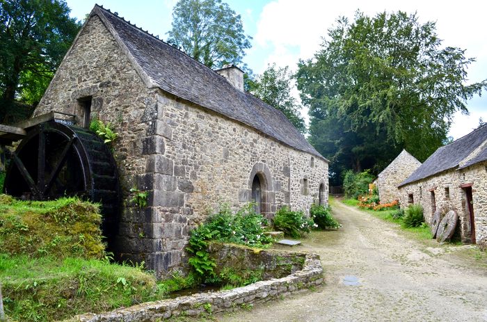 Domaine agricole exploité entre 1610 et 1942, le site des Moulins de Kerouat (29) raconte l'histoire des paysans-meuniers qui vécurent sur place, les céréales et autres plantes à farine qui jouèrent un rôle central. L'exposition que je m'apprête à découvrir traite de la relation entre la production agricole et les pratiques alimentaires des habitants des Monts d'Arrée du 19e au 20e siècles autour de l'alimentation dans la région avant les années 1950, de la consommation des crêpes, de l'ouverture des premières crêperies et de l'apparition des premières crêpières.
