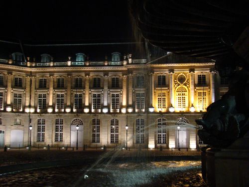 En face de la Cathédrale Saint André se trouve l'Hôtel de Ville de Bordeaux. Située au bout de la Place Pey Berland, le Palais Rohan forme le quartier historique de la ville. On n'aperçoit que des façades avec des ouvertures lorsqu'on regarde l'Hôtel de Ville mais en réalité, le Palais Rohan est dissimulé au fond d'une cour d'honneur. A l'arrière de celui-ci se trouve le jardin de la Mairie ( ouvert au public). On pourra découvrir les lieux lors des journées du patrimoine par exemple. L'escalier d'honneur est à ne pas manquer. Il possède trois trompes de pierre soutenant des volées représentant un chef d'œuvre de la stéréotomie française. La salle du conseil municipal fut aménagée en 1889. Elle est caractéristique de l'architecture officielle des belles années de la III ème République. Le Palais Rohan est construit sur le modèle de l'hôtel entre cour et jardin. Et se compose d'un important corps de logis flanqué de deux ailes basses en retour d'équerre. CE Palais fut construit pour l'archevêque de Bordeaux Ferdinand Maximilien M2riadec de Rohan en 1771. Hôtel de l'Archevêché jusqu'à la Révolution, il deviendra hôtel du département puis siège du tribunal révolutionnaire en 1791, hôtel de préfecture en 1802, Palais impérial de Napoléon 1er en 1808, et château royal en 1815 sous Louis XVIII. C'est en 1835 qu'il devient hôtel de ville.