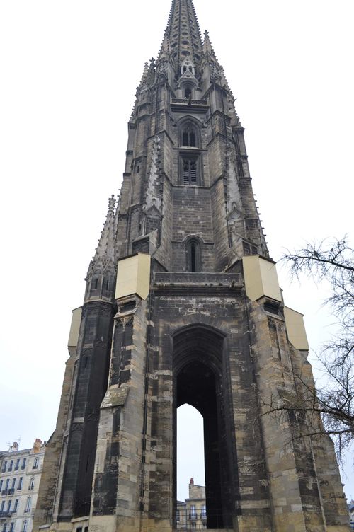 Bordeaux concentre la majeure partie de ses monuments sur une petite partie de la ville. C'est bien pratique car cela évite de trop marcher. Voici maintenant la Cathédrale Saint André, avec sa façade occidentale, partie la plus ancienne, qui date du XI ème siècle. La vaste nef unique a été érigée au XII ème siècle. On modifie les murs de nef un siècle plus tard, on double alors le nombre de travées et on rehausse les anciens murs. Au XVI ème siècle, on créé un voûtement en étoile. De style gothique, elle fut consacrée en 1096. Située au cœur de la Place Pey-Berland, c'est le lieu de culte le plus imposant de Bordeaux. Elle fut inscrite sur la liste des monuments de l'Unesco en 1998.
