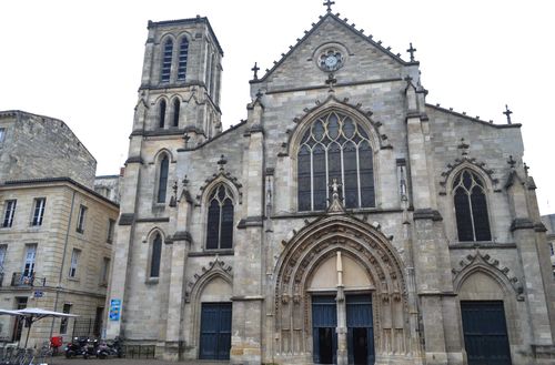 Insatiable, je poursuis ma promenade dans le quartier Saint Pierre. Là se trouve l'église Saint Pierre, au cœur du vieux Bordeaux, à l'emplacement même du port gallo-romain. Erigée au XV ème siècle et remaniée au XIX ème siècle, elle offre un portail de style gothique flamboyant . A l'intérieur, des voûtes en ogives finement sculptées ainsi que des vitraux du XIX ème siècle et une Piéta en bois du XVII ème peuvent être observés. Au XII ème siècle, on avait déjà presque remblayé le port et le quartier était pratiquement bâti. On déplaça les quais plus au sud, le quartier Saint Pierre connut l'essor de ses activités commerciales, ce qui explique que ses rues conservent encore de nos jours les noms de métiers d'antan: Rue des Argentiers, du Chais des Farines...