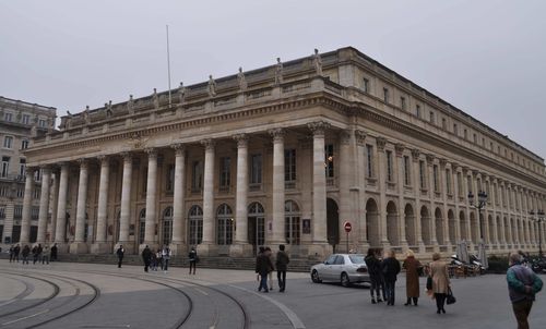 Je vous emmène maintenant au Grand Théâtre. Cet édifice fut commandé par le Maréchal de Richelieu qui était alors Gouverneur de Guyenne. Il fut édifié par l'architecte Victor Louis, et son inauguration le 7 avril 1780 donna lieu à la représentation de l'Athalie, de Jean Racine.