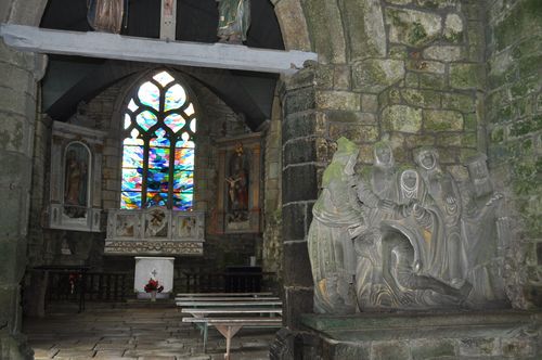 Quelques kilomètres plus loin, me voici à Mahalon. Primitivement romane, l'église Saint Magloire fut rebâtie au XVIII ème siècle. A l'intérieur se trouve une tombe du XVI ème siècle, un des premiers et des plus importants monuments funéraires de la Renaissance en Bretagne. Là sont enterrés les seigneurs de Tromelin. A l'extérieur, on peut observer, sur le pignon, un cadran solaire de 1652. La fontaine Maudez, elle, existe toujours, à deux pas de l'église, encastrée dans l'enclos du presbytère. Son eau serait réputée pour guérir les enflures.