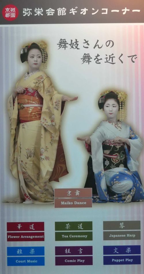Le théâtre Gion Corner propose deux séances régulières par jour: A 19h et à 20 heures, du 1er mars au 30 novembre. Un conseil: Renseignez-vous sur le site (infos pratiques) avant de vous rendre au théâtre. Une autre chose importante: Prévoyez de faire la queue trente minutes au moins ( les billets sont vendus dès 18h30 pour la séance de 18h30 et à partir de 19h40 pour la séance de 20h00) avant la séance car ce lieu est très populaire et attire de nombreux touristes étrangers. J'ai , pour l'occasion, réaliser huit séquences vidéo que vous pourrez découvrir à la section médiathèque.