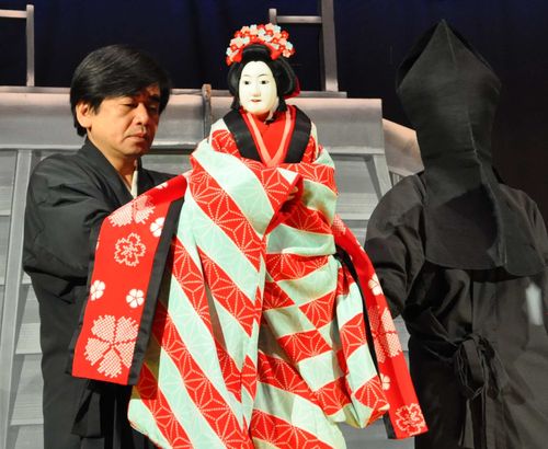 Vient ensuite le Bunraku,une pièce jouée avec une ou plusieurs marionnettes, art théâtral populaire présent depuis plus de de 1200 ans. A Kamigata (partie de Kyoto et de ses environs), le Bunraku apparut durant la période Eiroku (au XVI ème siècle) , sous l'impulsion de Takemoto Gidayu , connu comme le plus grand contributeur du Giyadubushi (musique et dialogue des pièces de marionnettes). Le gidayubushi parle de la vie quotidienne des marchands d'Osaka, la plus grande ville commerciale d'alors. Le bunraku reflète un style mélodramatique de divertissement. Et son succès réside surtout dans le soin porté dans la manipulation des marionnettes.