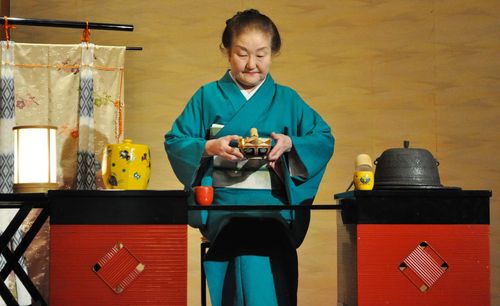 Il vous est d'abord proposé la cérémonie du thé (appelée aussi Chado). La tradition consistant à prendre le thé vient de la Chine et date du VIII ème siècle. Elle fut amenée au Japon par des moines bouddhistes Zen à la fin de la période de règne de la dynastie Heian ( au 12 ème siècle). Boire ce breuvage leur permettait ainsi d'éviter la somnolence durant les longues périodes de méditation. Le thé devint populaire au Japon à partir du début du XIV ème siècle. Un marchand, Sen Rikyu mit sur pied la cérémonie du thé telle qu'on la connait aujourd'hui, sous l'œil protecteur d'un puissant seigneur, Toyotomi Hideyoshi. Cette cérémonie reflète le concept japonais de « Wa Kei Sei Jaku » , c'est à dire l'idée de reconnaissance de la beauté réelle en toute simplicité. Sérénité, rusticité, grâce et esthétisme de la simplicité représentent assez bien la cérémonie du thé.