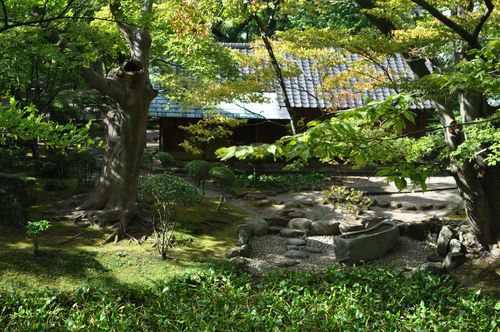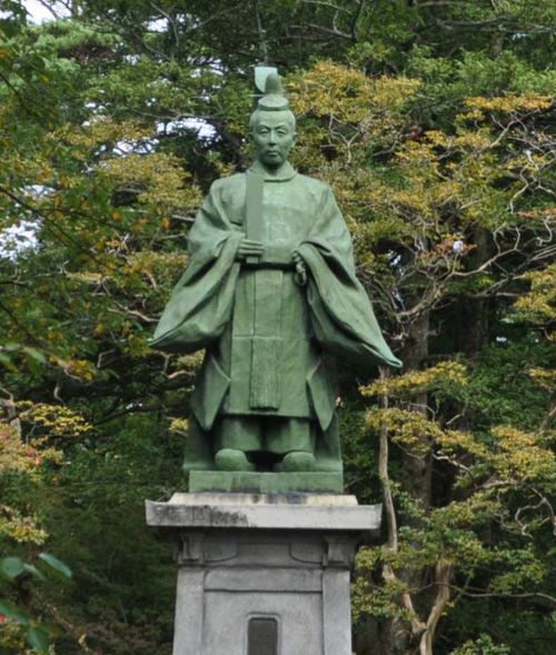 Mais revenons au parc Senshu: Entre ce qui fut l'emplacement jadis des murs intérieurs et extérieurs du château de Kubota, se trouve aujourd'hui la statue du douzième Lord féodal, Yoshitaka Satake (1825-1884), qui fut le dernier Lord. Un peu à l'écart se trouve, enfouie dans la verdure la maison de thé Senan, au bord d'un grand bassin d'eau avec des nénuphars (photo ci-dessous).