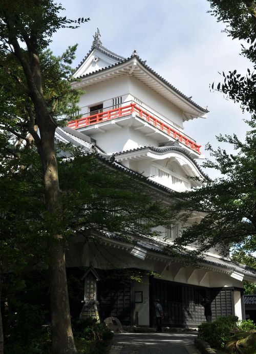 Il ne reste plus aujourd'hui que la porte principale (photo ci-dessus) et le bâtiment des gardes qui se trouve juste à côté. Cette porte appelée aussi Ichinomon était un endroit stratégique jalousement gardé par les gardes proches. Le Château de Kubota, dont la construction débutera en 1603, sera terminé en 1604. Le château fut érigé sur la colline Shinmei (le parc Senshu) la 8è année de l'ère Keicho. Il mesurait 117 mètres de large d'est en ouest et 215 mètres du nord au sud. On comptait une porte principale et cinq autres portes. La restauration de la porte principale eut lieu une première fois en 1622. Il y en a eu d'autres depuis mais elles ont toujours respecté scrupuleusement l'architecture de la famille Satake, qui date de la période Edo. Aujourd'hui, il ne reste plus du château que cette porte principale, le bâtiments des gardes, et une tourelle, Oumi Yagura. Cette tourelle servait autrefois à surveiller les environs mais aussi d'armurerie (photo ci-dessous).