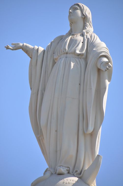 Une fois arrivé à la Terrasse Bella Vista, il me reste à franchir un escalier de pierres assez rustique avant d'atteindre le sommet de la colline San Cristobal. Je m'arrête sur la gauche afin d'admirer les œuvres artistiques de Cristian Sabja (ci-dessous). Je poursuis quelques instants plus tard ma marche et remarque sur ma gauche la statue d'une petite fille (deuxième photo) la bienheureuse Laura Vicuna. Née le 5 avril 1891, et décédée le 22 janvier 1904, Laura est la patronne des victimes d'abus. Première fille de la famille Vicuna Pino, Lorsqu'éclata la guerre civile chilienne à la fin du XIX ème siècle, toute sa famille dut fuir le pays. Après le décès du père, Mercédez, la maman de Laura s'enfuit en Argentine et trouva un emploi dans une auberge. Le patron de l'auberge fit des avances à la mère de Laura en lui promettant de payer l'éducation de Laura qui fut envoyée dans une école catholique. Laura va alors découvrir la foi catholique profonde, et le désir de servir les pauvres et les nécessiteux. A deux reprises, lors des vacances scolaires, Laura fut battu par Manuel, le patron de l'auberge qui s'était épris de Mercédez la maman, et ce dans le seul but de la dissuader de devenir une nonne. La petite Laura fut ensuite livrée à elle-même et fut recueillie par les religieuses qui lui offrirent une bourse pour la poursuite de ses études. La foi de Laura devenait chaque jour plus intense mais Laura tomba malade. Elle souffrit de la tuberculose pulmonaire , et décéda enfin le 22 janvier 1904, affaiblie par les sévices que lui avait infligé le patron de l'auberge. Les sœurs salésieinnes de Don Bosco entreprirent de débuter un procès en canonisation dans les années cinquante. Un travail de très longue haleine dont elles ne verront pas le fruit. De plus aucune photo de Laura n'était connu jusqu'à ce jour où l'on retrouva une photo de classe sur laquelle elle figurait. L'artiste italien Caffaro Rore put ainsi s'en servir pour peindre l'image de Laura qui figure sur la petite statue. Et il faudra finalement la venue de Jean Paul II à Santiago pour que la petite fille soit béatifiée le 3 septembre 1988. Son jour de célébration est fixé le 22 janvier de chaque année.