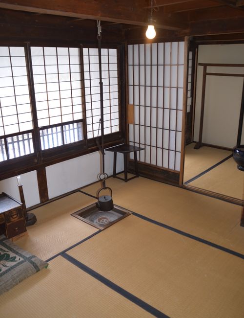 Au centre ville, je m'arrête quelques instants devant l'ancien magasin Iya (ci-dessous). Plus ou moins bien conservé, cet ancien bâtiment laisse imaginer ce à quoi ressemblait autrefois un commerce. Un autre entrepôt surnommé Gozaku (deuxième photo) représente la maison de marchand typique où l'on entreposait jadis les marchandises, endroit qui servait aussi de boutique. Dans les années 1800, on construisit cette maison pour y vendre des mèches de lanternes et de la paille.