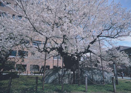 Non loin de là, un autre cerisier célèbre fait la fierté des habitants de la ville: Le cerisier qui pousse sur un rocher (ci-dessous).Portant le nom de Ishiwarizakura, cet arbre est l'un des grands symboles de Morioka car il représente l'endurance face à l'adversité. Ses racines réussirent en effet à casser le rocher où il se trouvait afin de se frayer un chemin dans le sol. Le cerisier possède désormais l'âge respectable de 350 à 400 ans et est visible dans un petit jardin situé en face du tribunal de la ville. Ses pétales sont irrésistibles au retour du printemps, début avril. Le cerisier est depuis devenu un monument national.