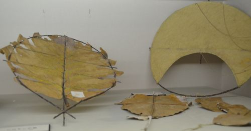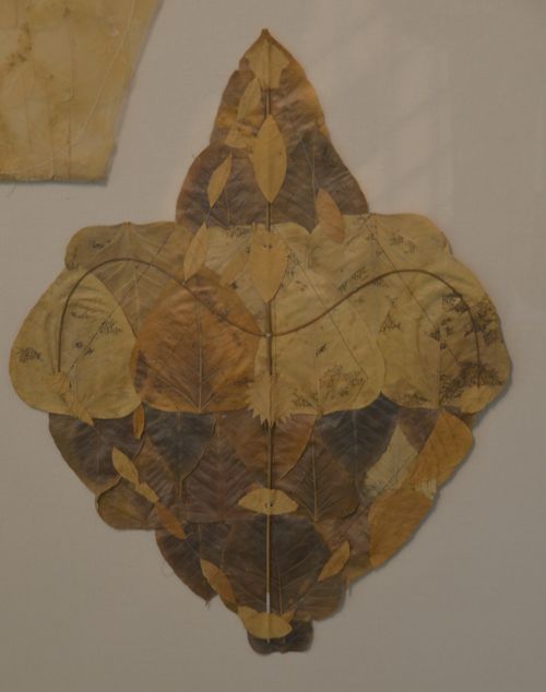 Au deuxième étage se trouve la galerie rassemblant les cerfs-volants originaires de plusieurs pays d'Asie (Vietnam, Inde, Thailande, Chine... ). Ci-dessous, par exemple, un cerf-volant constitué de feuilles d'arbres collées les unes aux autres et provenant de Thailande. Les cerfs-volants chinois sont aussi remarquables. D'anciens textes chinois font remonter l'origine du cerf-volant au IV ème siècle avant J.C. On prétend que les premiers engins proviendraient de la ville de Weifan. Ce pays en fit avant tout une utilisation militaire pour évaluer les distances, porter les messages ou tout simplement pour effrayer l'ennemi. On mentionne même des cerfs-volants porteurs d'hommes (comme dans les récits de Marco Polo). Et le premier être humain à s'élever dans les airs le fera en cerf-volant, bien avant l'arrivée de la montgolfière. Toujours en Chine, on trouve des cerfs-volants musicaux (en Chine du sud notamment), et aussi des cerfs-volants pliables (compacts) donc très facilement transportables.
