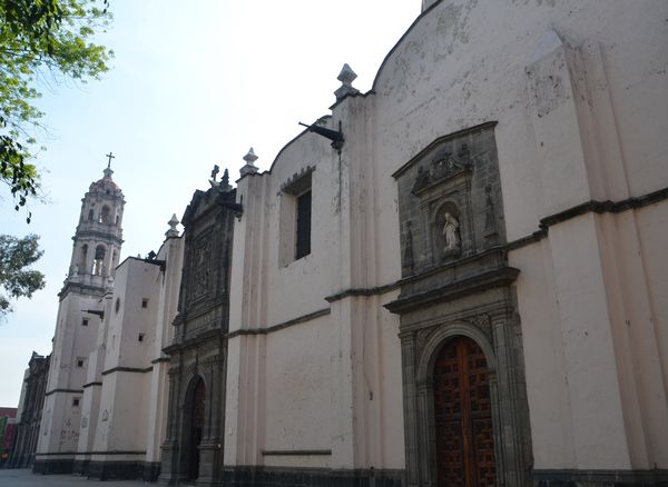 C'est dans ce centre que se trouve la cathédrale métropolitaine de Mexico, qui rassemble les styles classique, baroque et churrigueresque, Renaissance et néo-classique. Le Palais national fait aussi partie des joyaux du quartier, ainsi que l'hôtel de Ville de Mexico, tous situés sur la Place Zocalo. La rue Regina est très courue par les touristes. Autrefois obscure et délaissée, elle a depuis été remise en valeur. On y voit des façades d'immeubles typiques, mais aussi un mur végétal (première photo ci-dessus) et un mur ornée d'une peinture représentant la famille Burron (deuxième photo). On y trouve aussi l'arrière du cloitre Sor Juana,actuelle université ( malheureusement en cours de réfection), mais aussi l'hôpital Concepcion Beistegui ( en photo ci-dessous), monument archéologique à la façade baroque,devenu aujourd'hui une maison de retraite. A proximité, l'église Régina (deuxième photo), d'époque coloniale, portait autrefois le nom de Couvent Regina Coelli dont je découvre l'image (troisième photo ci-dessous) à l'intérieur de la petite église. A l'origine, Régina Coelli (ou Reine du Ciel) est un ancien hymne marial latin de l'église chrétienne. L'une des quatre antiennes mariales de la bienheureuse Vierge Marie. Sa paternité, inconnue, n'empêche pas ce chant d'apparaitre au XII ème siècle,principalement utilisé par les Franciscains. Dans la même rue, non loin de là, on trouve un parc pour enfants avec le mur aux artistes, et l'école secondaire N°1 avec sa façade gréco-romaine.