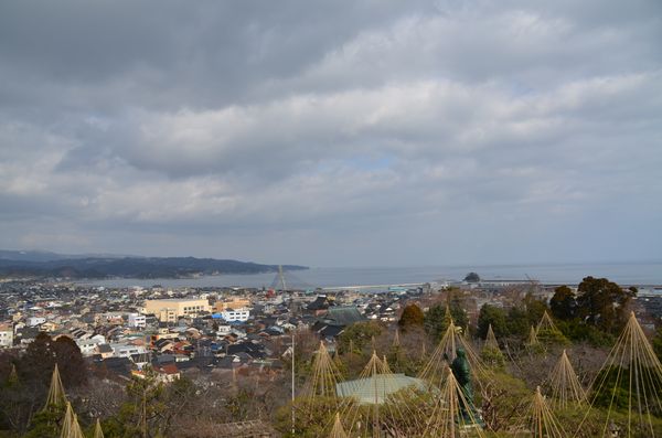 Il n'a rien d'un Ninja et pourtant je le rencontre dans la rue, au détour d'une conversation: Yabuta habite Himi et me propose de monter avec lui en voiture pour me conduire au parc Asahi Yama. Je me laisse tenter d'autant plus que ce parc se trouve sur les hauteurs de la ville: C'est le meilleur point d'observation de la région (ci-dessous). De là, on peut apercevoir la baie de Toyama, ainsi que la plage de Nada-Ura, la Péninsule Noto puis en tournant le regard à droite, on distingue la plage de Matsudae-Hama avec son sable blanc et ses forêts de pins. Au-delà de la mer, on peut aussi distinguer la chaine de montagnes Tateyama. Mais j'arrive trop tôt pour le bouquet final: La floraison des cerisiers et des azalées , qui n'a lieu qu'à partir d'avril.