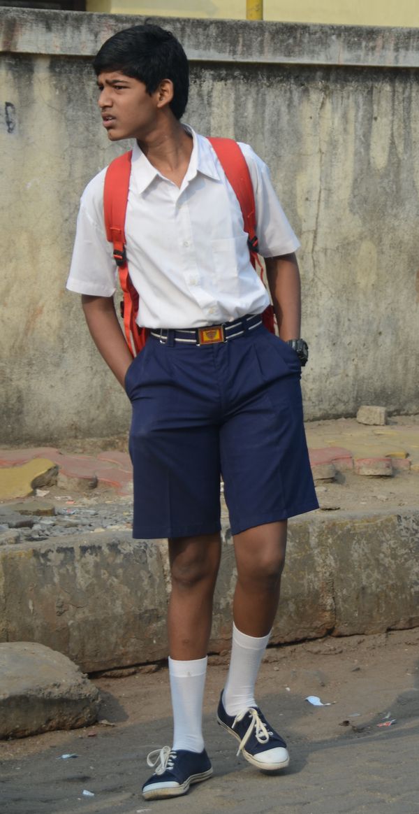 Cette semaine me conduit en Inde, plus exactement à Bombay, du moins près de l'aéroport où notre compagnie nous héberge désormais pour des raisons de sécurité. Il n'est alors pas facile de visiter la capitale qui se trouve à 25 kilomètres de notre hôtel. Le concierge me propose de visiter le Temple Iskcon, dédié à Krishna. Celui-ci se trouve dans la banlieue de Bombay, à une quarantaine de minutes de mon lieu d 'hébergement, plus exactement dans le quartier de Juhu, en bord de mer. La circulation est dense en ce lundi matin et mon taxi fait preuve de grande patience : Les rickshaws se faufilent entre camions et voitures, dans un concert de klaxons. Nous sommes bien en Inde ! Sous mes yeux défilent des scènes de vie que je n'ai malheureusement pas toujours le temps d'immortaliser. Des gens qui dorment sur le trottoir, un chien cherchant sa pitance dans une benne à détritus, ou encore ce collégien en uniforme ( photo ci-dessous) qui attend probablement son ramassage scolaire.