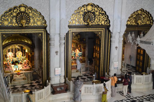 Dans les années 1970, le quartier de Juhu était considéré comme un endroit malfamé de la capitale et personne n'aurait alors songé à y construire un temple. Mais Srila Prabhupada, le fondateur, y acquit un morceau de terrain et promit à ses pères d'y ériger un temple à leur intention. Ces derniers vivaient à l'époque dans une simple cabane. Et le fondateur de faire appel aux disciples pour bâtir un « simhasana » (statue de lion en argent et en bois de teck) sur un autel en marbre. Le Temple, lui, sera coiffé de dômes en marbre blanc (en photo ci-dessous). Inauguré en 1978, l'ensemble englobe le temple en marbre, un auditorium récemment rénové, un grand restaurant et un hôtel de sept étages qui accueille les visiteurs désireux de participer à la vie spirituelle sur place.
