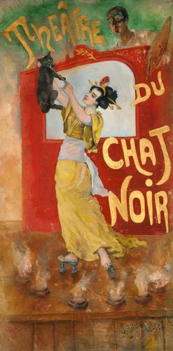 Fondé en novembre 1881 par Rodolphe Salis, Le Chat Noir, alors premier cabaret littéraire, artistique et musical d'avant-garde de la capitale, fut aussi un lieu d'innovation et d'improvisation, avec son mélange imprévisible de chansons, de boniments et, bien sûr, son théâtre d'ombres. Le jeune Rodolphe est à cette époque créateur d'écoles et un mystificateur redoutable. La police y autorise l'usage d'un piano, derrière lequel se succéderont Paul Delmet, Albert Trinchant, Erik Satie, Claude Debussy, Gustave Charpentier....L'endroit sera racheté en 1897 par Henry Dreyfus, chansonnier montmartrois, qui le rebaptisera La Boite à Fursy. Situé au pied de la Butte, ce cabaret fut l'un des hauts lieux de rencontre du Tout-Paris et le symbole de la Bohème à la fin du XIX ème siècle. Le Musée de Montmartre qui accueille les visiteurs depuis 1960 dans la maison du Bel Air, retrace pour nous l'histoire du quartier mais aussi la vie politique, artistique et festive de la Butte. Et eut l'idée de proposer au public, il y a quelques mois, une exposition unique sur le cabaret du Chat Noir. L'atmosphère littéraire, artistique et musicale du lieu y est évoquée à travers la présentation de plus de 300 œuvres (peintures, aquarelles, dessins, estampes, affiches) d'Henri de Toulouse-Lautrec, Edouard Vuillard, Théophile-Alexandre Steinlen, Adolphe Willette, des Nabis et des Symbolistes, sans oublier une reconstitution du théâtre d'ombres (et ses silhouettes en zinc!) et des accompagnements musicaux (Bruant, Yvette Guilbert). Le divertissement et la bohème artistique montmartroise y sont enfin représentés par le cirque Fernando , le Moulin Rouge et le Bal Tabarin.