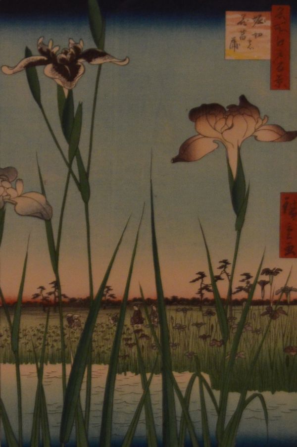 En venant passer ce weekend à Hagi, je savais que je trouverais sur place un important patrimoine culturel et historique. Ceux qui me lisent régulièrement savent l'importance que j'accorde à l'histoire d'un lieu. Chaque endroit s'est forgé au fil du temps et au gré des évènements, grâce à ceux qui nous ont précédé et ignorer cette histoire revient tout bonnement à ignorer ce que nous sommes. Plongeons donc dans l'histoire de cette petite ville nippone située au bord de la Mer du Japon. Je vous ai déjà décrit l'endroit lors d'un précédent article mais je ne vous ai pas encore parlé des quartiers qui la composent. A vrai dire, Hagi ressemble à n'importe quelle autre ville japonaise de taille moyenne lorsque vous débarquez en train. La petite gare d'Higashi-Hagi ( la ville compte tout de même trois gares ferroviaires!) avait l'avantage de se trouver à deux pas de mon hôtel, sur les rives de la rivière Matsumoto. Je privilégie souvent la marche car cela me semble par exemple moins contraignant que d'attendre un bus et permet de déambuler librement dans les moindres recoins d'une cité. La vieille ville se trouve juste à proximité de l'ancien château. Je m'arrête d'abord au musée d'art Uragami qui doit son nom à son bienfaiteur, Monsieur Toshiro Uragami, un entrepreneur natif d'Hagi qui fit don de sa collection d'ukiyo-e et de céramiques orientales. Ces œuvres d'art sont désormais mises en valeur au sein de ce magnifique endroit et contribue ainsi à faire notamment connaître la céramique qui reste l'un des fleurons historiques d'Hagi depuis 400 ans. Quant aux ukiyo-e, sachez qu'elles constituent des « images du monde flottant »qui représentent surtout des estampes japonaises gravées sur bois (ci-dessous, à titre d'exemple, l'une des cent plus belles vues d'Edo, « Iris à Horikiri », œuvre de Utagawa Hiroshige peinte en 1857).