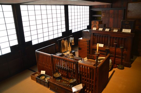 Résidence 	Kikuya. Droit d'entrée: 500 yens. Brochure explicative des 	différentes pièces de la demeure et des objets présentés, en 	anglais. Pas de plan disponible (malheureusement!) et il est 	fortement conseillé de suivre les numéros des commentaires pour 	s'y retrouver. Des guides sont présents sur les lieux pour vous 	aider. Se déchausser avant de pénétrer dans les lieux.