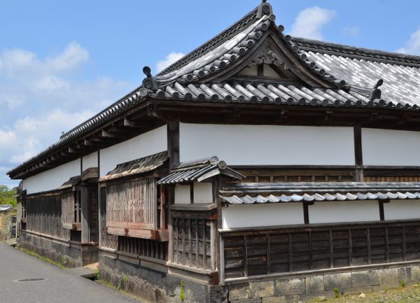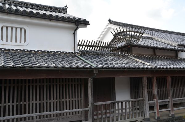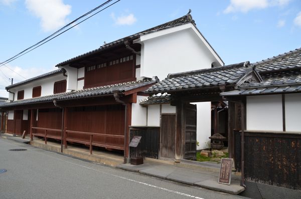 Les rues, relativement étroites de la vieille ville m'oblige souvent à me pousser pour laisser le passage aux nombreuses voitures. Je m'attarde plus longtemps sur la résidence de la famille Kikuya (ci-dessous): Bien culturel important, cette maison possède cinq bâtiments qui ont été restaurés. Il y a d'abord « Omoya » qui constitue la maison principale, puis « Hon Gura » (l'entrepôt principal), »Shin Gura » (l'endroit où l'on abritait les objets de valeur), « Kamaba » (la cuisine et les foyers où l'on cuisait le riz) et « Kome Gura » (l'entrepôt à riz). D'après d'anciens documents, la résidence principale aurait été construite en 1606, deux années seulement après l'attribution de l'endroit à cette famille. On invita bien sûr à l'époque le seigneur Terumoto Mori à l'inauguration de cet ensemble qui représente l'une des plus anciennes constructions japonaises dans le style yashiki. On restaura également le salon Shoin et la porte Nagaya (deuxième photo) tel quel, ce qui donne à l'ensemble l'apparence d'une vraie grande maison de marchand. La porte Nagaya fut quant à elle bâtie sur l'ordre du clan Mori lors de l'arrivée de Tsunahiro Mori à Hagi en tant que deuxième seigneur du clan. Ce type de porte n'était pas autorisé dans les demeures de samouraïs de second rang, mais plutôt pour les maisons des marchands, d'où cette ordre de construction de cette porte qui était destinée à embellir la façade de la demeure. C'est en effet par cette porte principale qu'étaient reçus les hôtes du shogunat. Deux autres portes, plus modestes, la porte Onari (utilisée par les hôtes de marque afin d'accéder directement au salon Choin) et la porte Naka (qui servait d'accès aux seigneurs féodaux et à leurs vassaux) font partie de la résidence.