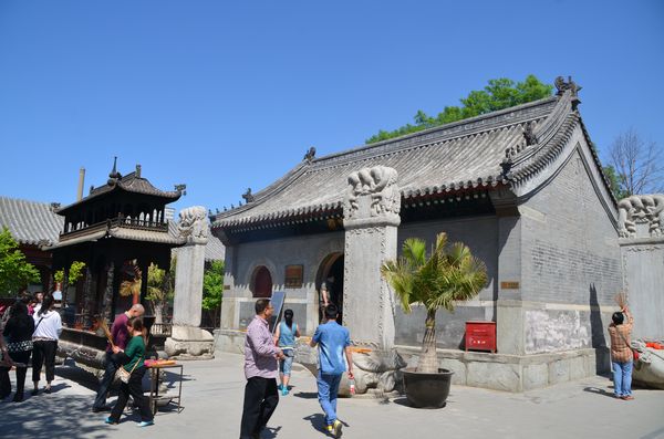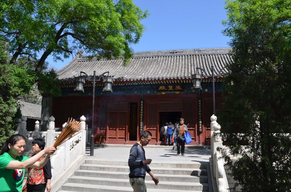 Je ne visiterai pas toutes les salles car elles sont nombreuses mais le lieu est agréable et très fréquenté par des fidèles chinois ( j'étais le seul blanc!) qui viennent se recueillir sur place. Je n'ai pas été autorisé à prendre des photographies à l'intérieur des salles, sauf une seule fois, dans la salle Sanguan (ci-dessous). Mais je n'ai jamais senti de tension ou d'animosité lorsque je pénétrais à l'intérieur. Et les quelques personnes à qui j'ai demandé mon chemin furent très coopérantes. A l'intérieur du temple, il y a aussi un centre de soins qui dispense aux patients acuponcture et massages ( voir infos pratiques ci-dessous). J'y fus en ce qui me concerne très bien accueilli et servi immédiatement et...gratuitement! Est-ce parce que je suis étranger?