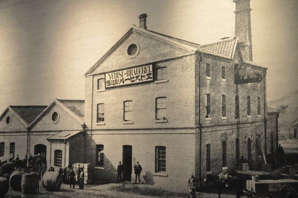 En septembre 1887, un groupe d'entrepreneurs locaux de Tokyo et de Yokohama qui avaient deviné l'avenir d'un tel breuvage se mirent ensemble et fondèrent la Japan Beer Brewery Company avec l'ambition de devenir N°1 au Japon. A cette époque, l'endroit était uniquement recouvert de champs et de forêts avec juste quelques maisons. En octobre 1889, on construisit une brasserie sur l'aire de Mita, les environs de Meguro. Les gens furent d'abord surpris de découvrir ce bâtiment en briques construit en banlieue (ci-dessous) mais en février 1890, trois ans après la création de la brasserie, Yebisu Beer était née.