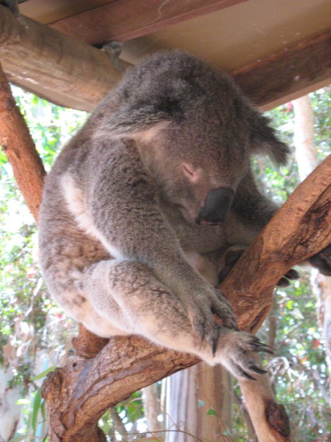 Voici venu le tour des koalas, de petites peluches adorables dormant du sommeil du juste (20 heures chaque jour) pour compenser l’énergie qu’ils dépensent à se nourrir de feuilles d’eucalyptus. J’ai fait rire un couple de visiteurs néo-zélandais qui passaient par là , en comparant ce koala (dormeur) à l’un de nos anciens premiers ministres lors des séances de débat à l’Assemblée Nationale. Vous voyez de qui je veux parler ?
