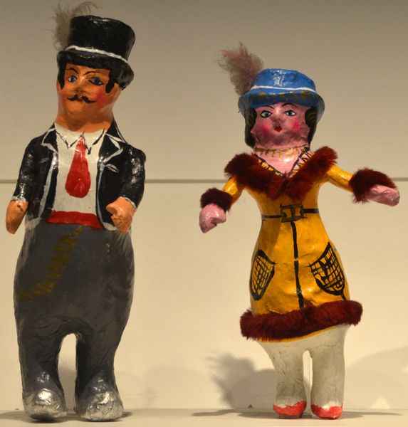 Ce besoin d'auto-expression est une forme d'introspection. Les artisans transforment en effet ces images identitaires en des caricatures pouvant se révéler critiques voire implacables. Cette façon qu'ont les Mexicains de rire de bien des situations et des personnages autour d'eux, tend à faire croire qu'ils se moquent d'eux-mêmes. Tenez, prenez par exemple ce couple mexicain (en photo ci-dessous), Monsieur qui est accompagné de son épouse, une œuvre qui a été réalisée par un auteur anonyme de la ville de Celaya (Etat de Guanajuato).