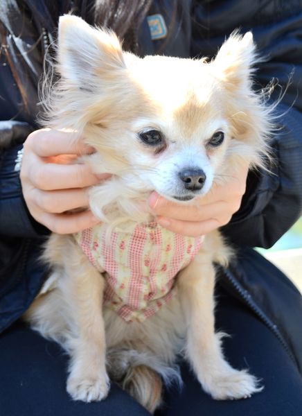 Comme tout le monde, j'attends 14h46, heure de la survenance du terrible séisme il y a trois ans. Pour tuer le temps, je m'assois au bord de la grande fontaine qui se trouve là et engage la conversation avec une jeune fille japonaise qui promène son petit chien (en photo ci-dessous). Je lui parle de mes voyages et de mon site internet. Nous parlons également du séisme et du Japon en général. Et de la terrible fatalité de ce pays qui doit se battre régulièrement avec les éléments naturels. A l’heure dite, nos nous recueillons tous, en silence et l'on fait le « mokuto » (minute de silence en japonais).
