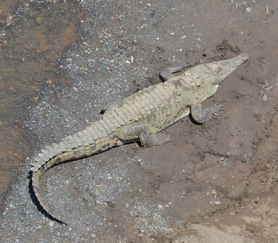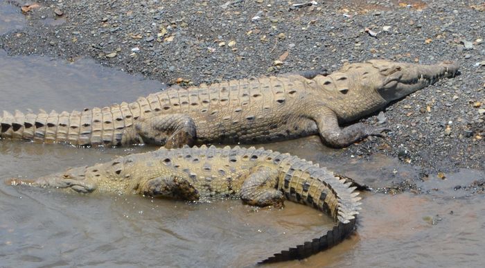 Les crocodiles visibles dans la rivière Tarcoles sont des crocodiles américains, une des plus grandes espèces de crocodiles. Les mâles adultes atteignent une taille moyenne de 5 à 7 mètres et pèsent habituellement 400 à 500 kgs. On trouve même des individus de plus de 6 mètres de long et qui atteignent la tonne !