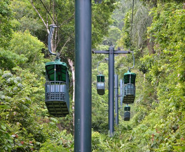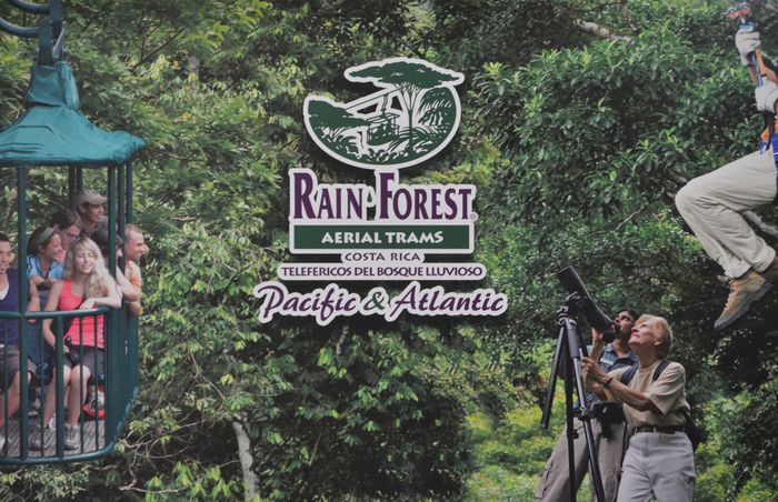 Nous arrivons à notre hôtel, un magnifique lodge situé à l'intérieur d'un parc très bien entretenu, sur les coups de midi. Nous posons nos bagages dans la chambre et repartons en direction de Jaco, une ville toute proche. Là se trouve un grand parc, le Rainforest Adventure du Costa Rica Pacifique (en photo ci-dessous). France et moi souhaitons visiter une forêt humide tropicale vue d'en haut. Ce parc répond parfaitement à notre attente car un téléphérique permet de survoler la canopée et de profiter de la vue alentour. Un guide nous accompagne et nous fait la visite des lieux : la réserve forestière dans laquelle nous nous trouvons est de 90 hectares mais une partie de celle-ci ne peut être aménagée et doit rester à l'état sauvage.