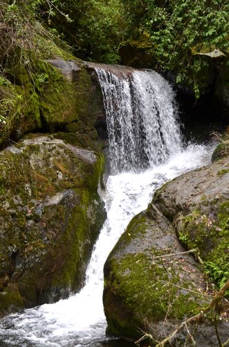 Le soleil, d'abord timide, s'élève progressivement dans le ciel, jusqu'à dissiper les brumes matinales. Une belle journée s'annonce, du moins jusqu'à midi, moment à partir duquel le ciel a une fâcheuse tendance à se couvrir pour ensuite nous asséner un déluge de pluie. Plusieurs balades sont possibles au départ du Trogon Lodge et je pars effectuer un peu plus tard l'une d'entre elles. Je passe devant une cascade dont la température de l'eau n'est annoncée qu'à 11°C. Je ne baignerai pas car c'est de toute façon interdit. Ma promenade durera une heure quinze et je ne croiserai aucun animal au cours de celle-ci. Le sentier, aménagé, m'empêchera de me perdre dans cette montagne à la forêt dense.