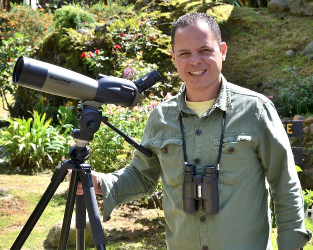 Il n'est pas aisé de dénicher cet oiseau farouche mais superbe. Tôt ce matin, je pars en compagnie de Greivin (en photo ci-dessous) afin de tenter d'apercevoir cette créature. Il est six heures du matin au Trogon Lodge et la nature s'éveille peu à peu. Les oiseaux sont déjà à pied d'oeuvre et nous marchons en direction d'arbres remplis des fruits dont les quetzals raffolent.