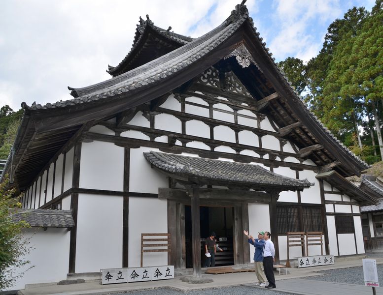 Je me rends ensuite au temple bouddhique Zuiganji, à dix minutes de là. A l'entrée de ce temple se trouve la statue du dieu gardien de la longévité, Enmei Jizo. Cette statue en bronze, de 1863, montre un moine bouddhiste assis sur une feuille de lotus, qui dédia sa vie exceptionnellement longue aux jeunes enfants à qui il procurera des refuges dans les sanctuaire durant les périodes de famine (grâce aux dons des habitants alentours de Shiogame et d'Ishinomaki). Le bâtiment principal est actuellement en réfection pour plusieurs années encore mais le public peut accéder au Kuri (cuisine zen du temple, en photo ci-dessous). Fondé en 828, puis reconstruit par Date Masamune en 1609, le temple Zuiganji est le plus célèbre temple zen du Tohoku. Juste à côté, le musée du Trésor du temple, Homotsukan, rassemble une quantité importante d'objets précieux qu'il est interdit de photographier. On trouve ainsi la statue de Date Masamune lui-même, en grandeur nature et en armure, qui fut réalisée à la demande de sa femme, 17 ans après son décès. Plus haut, au sommet d'une colline, se dresse le mausolée Yotokuin (deuxième photo). Celui-ci est le mausolée de la femme de Date Masamune, Mehogime. Construit par Tsunamune, son petit-fils, en 1660, ce magnifique bâtiment fut restauré en 2006, et comporte une calligraphie encadrée de Daiten Tsutetsu. Ce lieu n'est ouvert qu'en de très rares occasions.