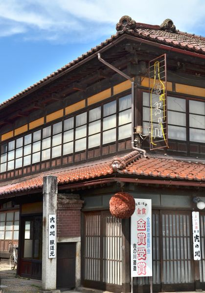 Après ma visite du musée des ramen, je me promène dans cette petite ville tranquille et admire certaines maisons traditionnelles (ci-dessus). J'ai bien tenté de trouver des croissants avec un bon café mais rien à faire ! Ici, on ne mange que des pâtes. Et peu de sucreries. Kitakata ressemble à une petite cité tranquille. On me sourit et on me salue lorsqu'on me croise. Un passant me demandera même l'autorisation de me prendre en photo avec l'affiche d'une prochaine fête devant avoir lieu fin octobre. Il est vrai que les étrangers ne courent pas les rues (je n'en ai rencontré aucun aujourd'hui) compte tenu, je suppose, des informations alarmistes distillées par nos médias occidentaux sur le taux de radioactivité dans cette région. Je rencontre plusieurs kura, ces entrepôts traditionnels japonais. Faits en bois, en pierre ou en argile, ces constructions permettaient de stocker autrefois en toute sécurité les différentes marchandises. Jadis, le kura servait à entreposer des objets précieux et on estime que le premier kura fut construit durant la période Yayoi. A proximité de la rue Fureai, se trouve le Musée du saké Yamatogawa. Je me dis que cette terre est bénie des dieux et offre des mets délicieux. Après le plat, le breuvage...Cette brasserie (ci-dessous) fut fondée en même temps que la Révolution française, en 1790, comme se plait à le souligner Mr Sato Yuemon. Et cela fait 220 ans que celle-ci produit du saké et il y en a pour tous les goûts puisque, désormais, la palette de saké est infinie. Cela va du saké de table jusqu'au saké de luxe (comme le Tadatona, qui repose en cave pendant trente ans avant d'être vendu 210€ la bouteille). Tout dépend du degré du saké, du polissage des grains de riz, du temps de fermentation et de l'ajout (ou pas) d'alcool. On trouve même désormais des sakés à base de fruits (comme ce saké à la pêche de Fukushima). Qui dit région de Fukushima, dit crainte de contamination depuis l'explosion du réacteur nucléaire situé à cent kilomètres d'ici, mais à cet argument, la brasserie Yamatogawa répond que tout est contrôlé : l'eau (qui provient des Monts Ide), le riz complet, puis le riz devenu blanc (après lavage) et le saké lui même. Les résultats révèlent des taux de 0 à 25 becquerels par kilo (le seuil de tolérance étant fixé à 100 becquerels). Ce saké est écoulé dans tout le Japon (dont 40% auprès d'une clientèle de particuliers) et à l'étranger. La brasserie n'utilise que son riz pour fabriquer le précieux breuvage et possède, pour ce faire, 25 hectares de rizières. Du riz garanti 100% bio, arrosé avec un eau pure venue des montagnes environnantes. La région de Kitakata produit d'ailleurs beaucoup de riz puisqu'on compte environ 4600 kura (entrepôts à riz) sur place.