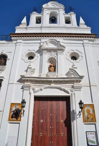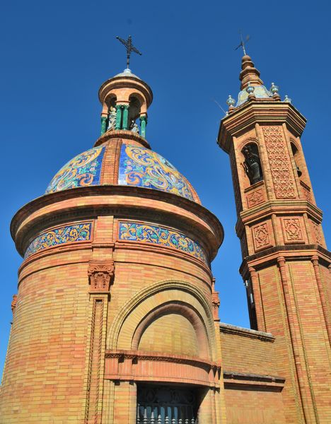 Jouxtant le Château de San Jorge, le marché Triana (ci-dessous) offre l'animation habituelle avec ses étals typiques arborant des enseignes en céramique. Je m'arrête au Bar Las Murallas pour boire un café et engloutir un sandwich au jambon de pays. Je discute avec le serveur qui m'avoue être né en France mais avoir choisi la nationalité espagnole à l'âge de 18 ans. Son français est parfait, sa cordialité également. Le quartier a une histoire très riche : après la découverte de l'Amérique par Christophe Colomb en 1492, débuta une intense période d'exploration et de colonisation qu'on appela la Course aux Indes. Des quais sévillans partirent quasiment toutes les expéditions d'exploration de la première moitié du XVI è siècle. 1564 vit l'établissement officiel de l'organisation navale, puis, en 1569, naquit l'Université et Confrérie des Navigants et Pilotes de la route des Indes. Association des professions de la mer, celle-ci avait entre autre un rôle d'assistance et s'occupait des affaires techniques et professionnelles de la route des Indes. Elle demeura à Triana jusqu'à 1681, date de l’inauguration du Collège Séminaire de l'Université des Navigants dans le Palais de San Telmo. Une intense activité se développa sur les rives du quartier de Triana durant toute cette période, où se croisaient couteliers, bateliers, alfatiers,et pêcheurs. D'où l'existence d'une Chapelle des Marins (deuxième photo). L'édifice sert de siège à la Confrérie de la Esperanza de Triana (qui fut préalablement créée à l'Eglise Santa Ana en 1418). Lors de mon passage, la petite chapelle est fermée mais sachez qu'à l'intérieur, si la chapelle ne possède qu'une nef unique, elle dispose par contre de quatre retables dont le retable majeur, provenant d'un couvent d'Osuna. Dans sa partie centrale, on peut apercevoir une statue vêtue de Notre Dame de la Esperanza de Triana Coronada, attribuée à Gabriel de Astorga.