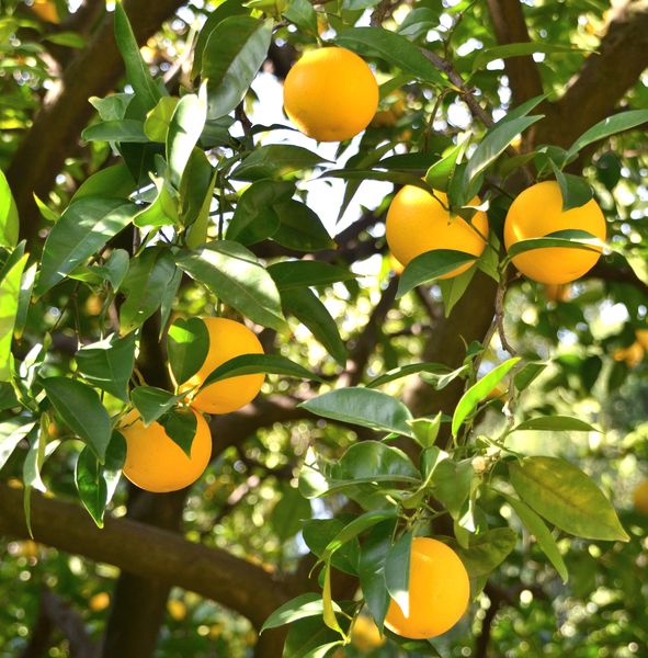 Le patio suivant est le Patio des orangers (ci-dessous) : au XV ème siècle, celui-ci était le patio d'entrée du palais. Il rappelle ces jardins hispano-musulmans de par sa structure fermée et son atmosphère intime, mais aussi le rôle important de l'eau (on y trouve deux fontaines) et l'utilisation combinée des fleurs et des arbres fruitiers. On y trouve six orangers centenaires qui entourent la fontaine centrale. Juste à côté, un joli bassin est garni de mosaïques. La glycine recouvre la presque totalité des murs voisins, Le bruit constant de l'eau, les recoins inaccessibles, la pénombre sont synonymes de mystère, solitude, intimité et de repos. Trois plantes principales ornent ce patio : l'oranger amer, la glycine de Chine et l'héliotrope, plante préférée du marquis d'alors.