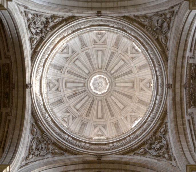 Je me rends plus tard à la Cathédrale de l'Ascension de la Vierge, située face à l'Hôtel de ville et au Palais épiscopal. Sa construction qui débuta en 1249 sur les ruines d'une ancienne mosquée, sera consacrée en 1724. Endommagée à plusieurs reprises deux siècles durant, et jusqu'au XVI ème, plusieurs architectes contribueront à son érection dont Andrès de Vandelvira qui participera activement à la restauration du site. Sa façade (ci-dessous) est l 'élément le plus frappant de l'édifice. Celle-ci fut dessinée par Eufrasio Lopez de Rojas puis sculptée par Pedro Roldan. Contrairement à d'autres édifices religieux, ici, je ne relève l'existence d'aucune visite, ni de musée (contrairement à ce qui est annoncé dans les infos pratiques ci-dessous). Une clarification serait souhaitable. Je pénètre à l'intérieur puisque la porte est ouverte. Aucune messe n'a lieu mais plusieurs panneaux affichent clairement qu'il est interdit de prendre des photos. Je dérogerai tout de même à la règle, ne pouvant m'empêcher de photographier la magnifique coupole au-dessus de ma tête.